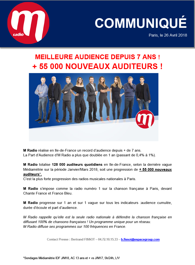 Communiqué : M radio, meilleure audience depuis 7 ans en IDF