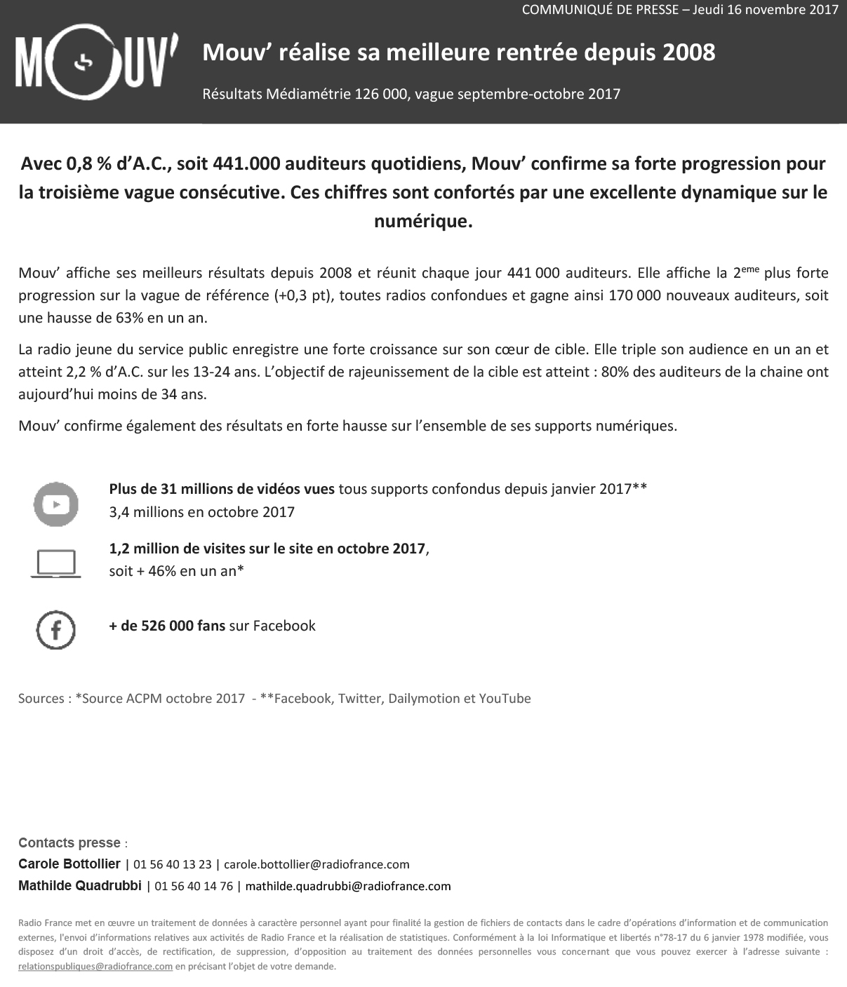 Communiqué : Mouv’, réalise sa meilleure rentrée depuis 2008