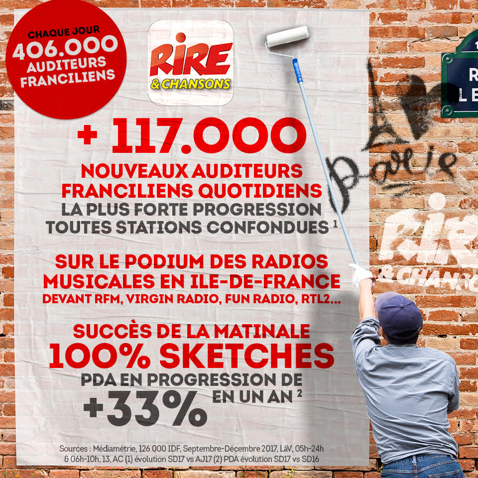 Communiqué : Rire et chansons, +117 000 auditeurs franciliens quotidiens
