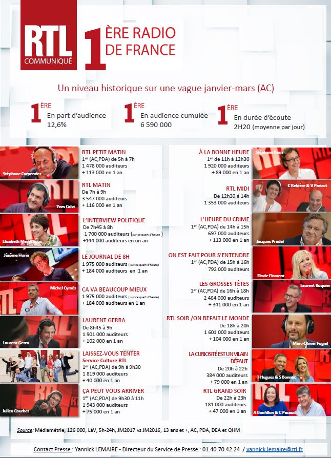 Communiqué RTL résultats par émission