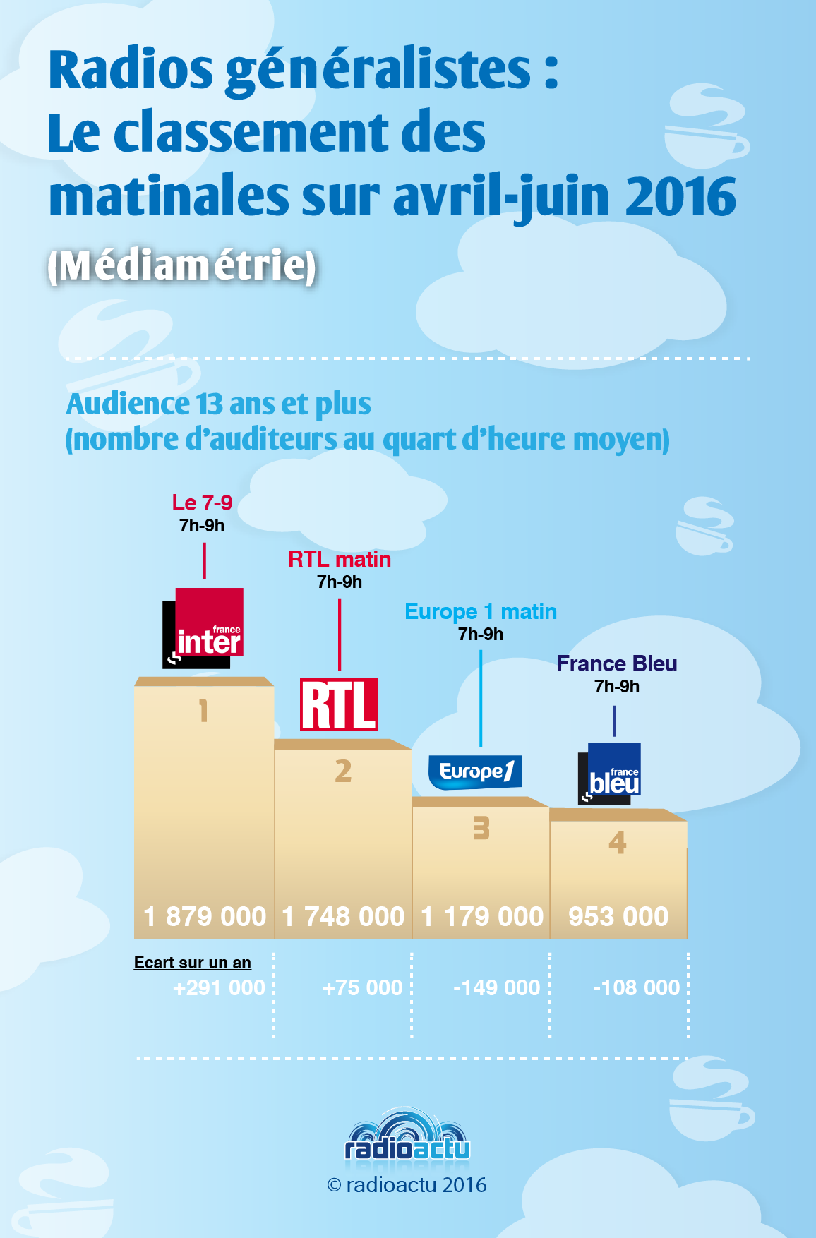 Les matinales généralistes, classement sur la période avril-juin 2016