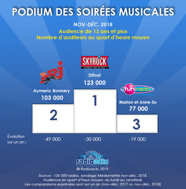 Sondage nov-déc. 2018 : le podium des émissions en soirée sur les radios musicales jeunes