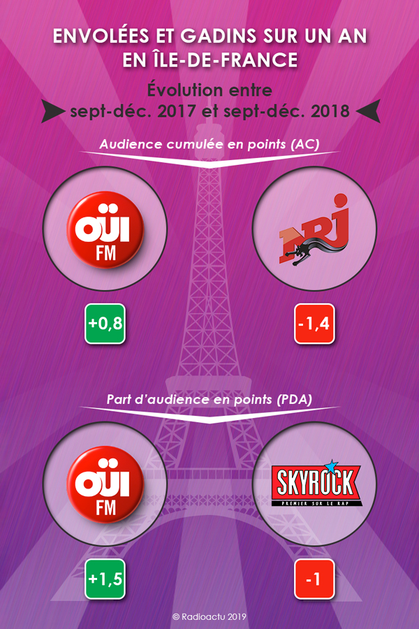 Sondages radios nov-déc 2018 en IDF : envolées et gadins sur un an